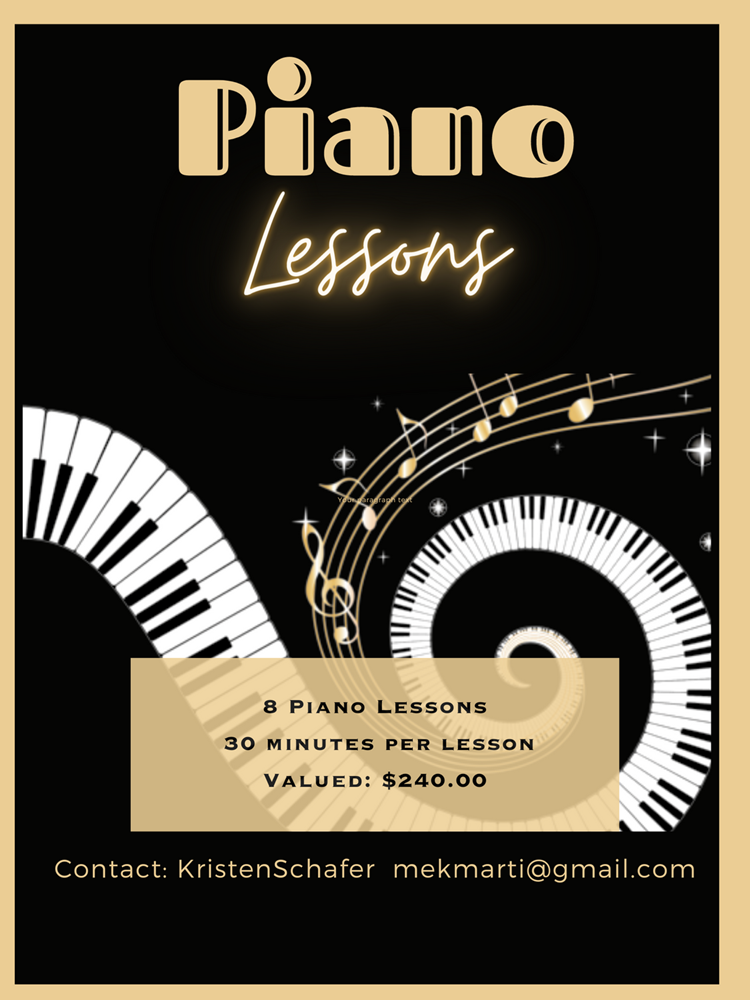 One of our valued Chorale Members, and event organizers, Kristin Schafer, has generously donated her time to provide 8 30-minute piano lessons in her home. This is great for anyone who is looking to try out the piano for the first time, or get a refresher course. ** Lessons must be completed within 3 months. **