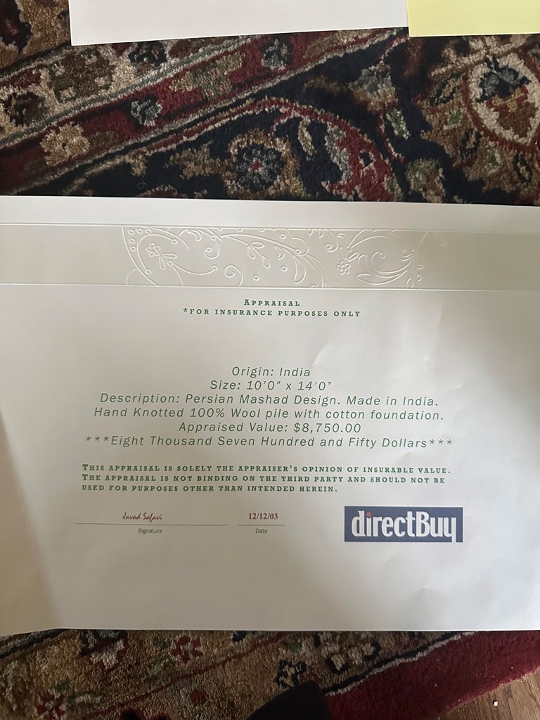 LOCAL BUYERS ONLY PLEASE - St. Paul, MN ITEMS NEED TO BE PICKED UP BY SUNDAY, SEPT. 24TH Persian handknotted rug, please see photo for appraisal value.