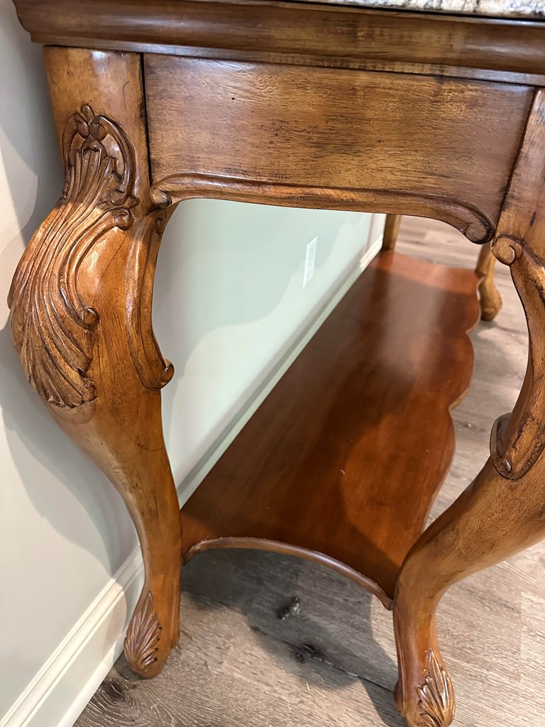 Bernhardt Granite and Walnut Wood Entry Way Table