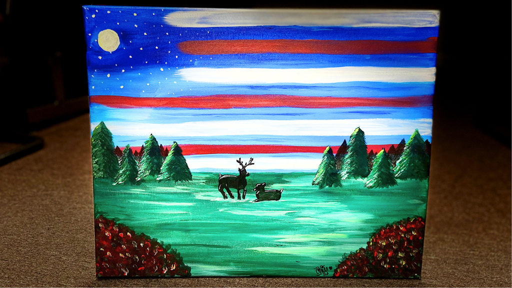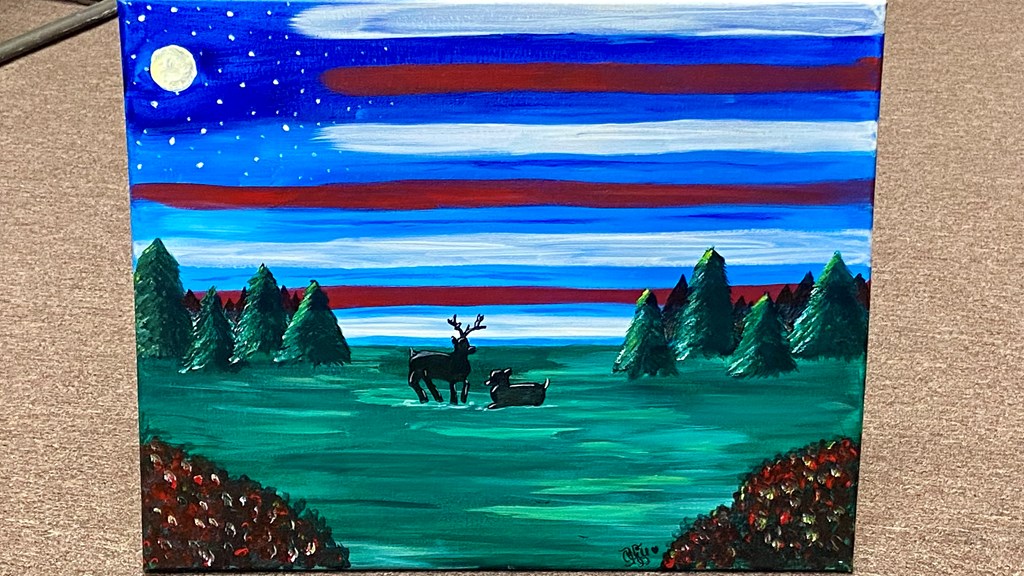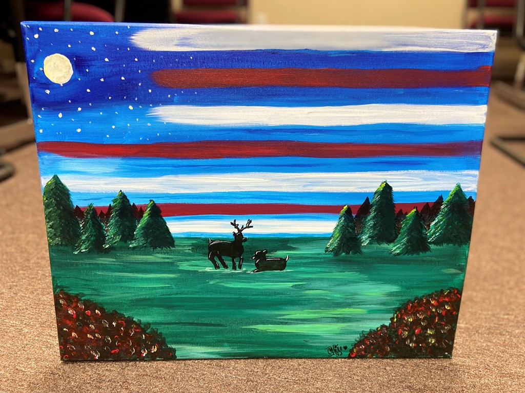 Beautifully painted canvas made by Cathy Hill. This would be perfect to add color to any home decor. Since this is hand-painted, you can rest assured that you will have a one-of-a-kind piece of art.