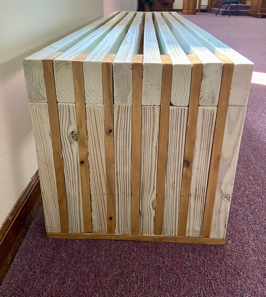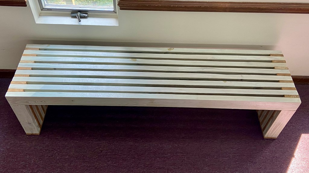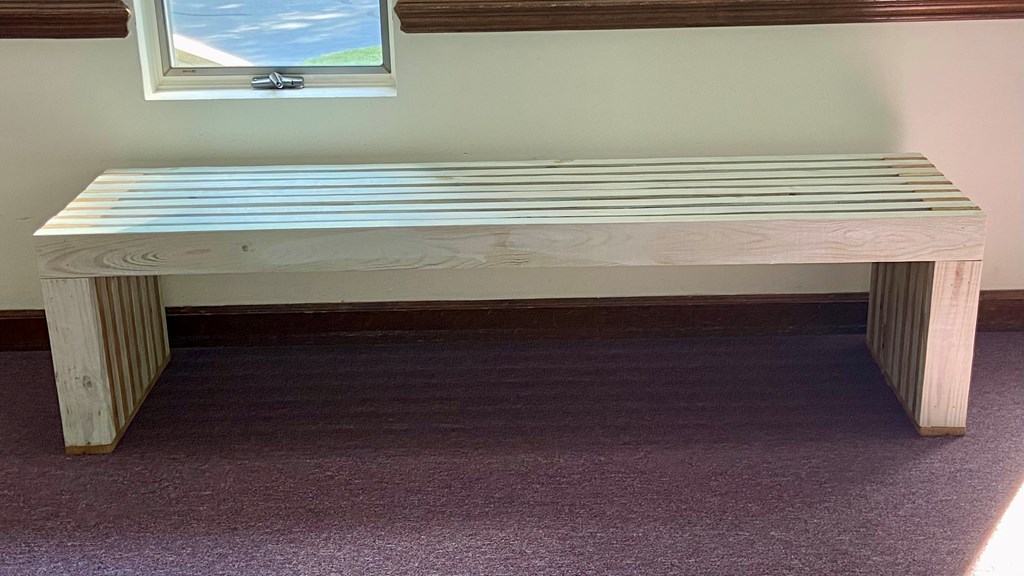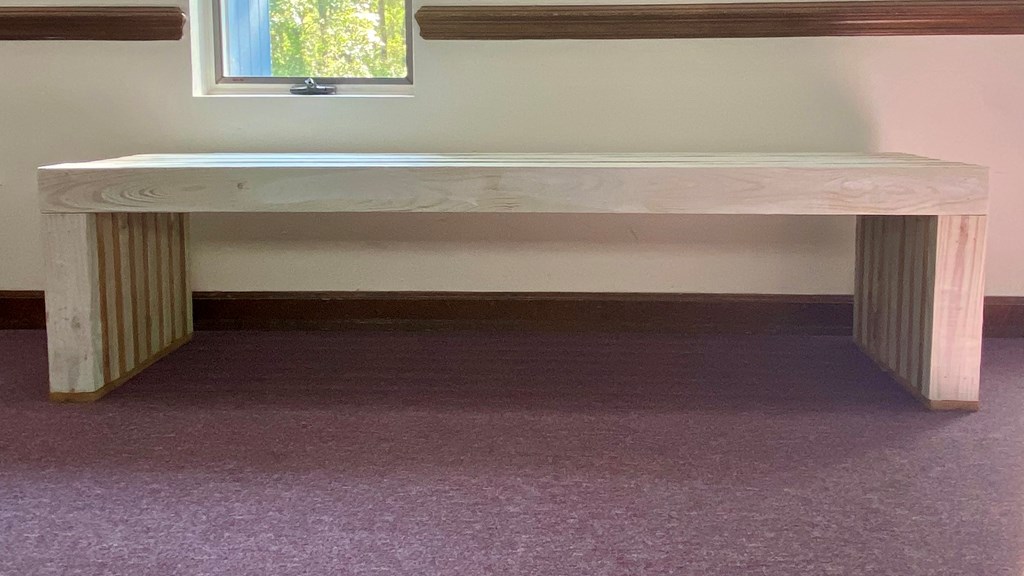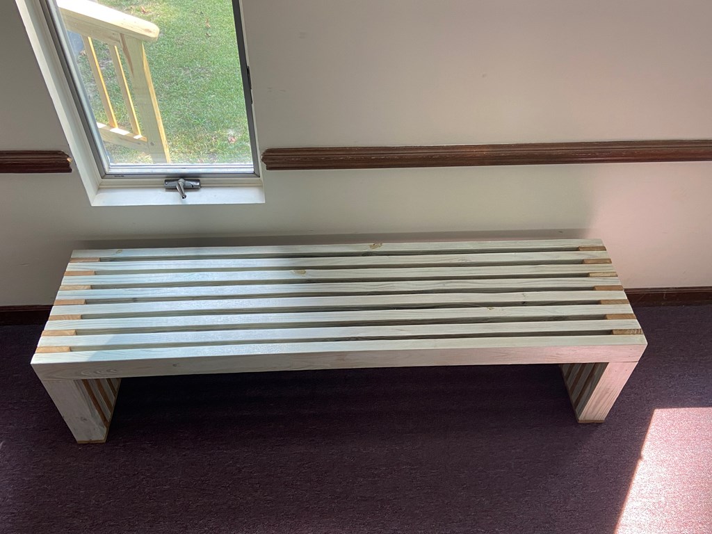 This hand-crafted outdoor bench is made of treated pine and stained to last many years in your yard or patio area. Solid construction built by Carpenter's from Mars, located in Smithfield, North Carolina. Pictures truly do not showcase the craftsmanship of this item. This is a custom-built bench, so you can enjoy having a one-of-a-kind item. The bench is 72 inches long and 18 1/2 inches tall. *This item can not be shipped and must be scheduled for local delivery or pick up. https://carpentersfrommars.com