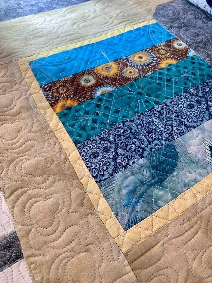 Lola & Lloyd is a quilt is a lovely custom quilt created by Judie Walauskis made with vibrant green & blues with 100% cotton. Custom quilted and measures: 56" x 64" An estimated 785 million people do not have clean water—that’s nearly 1 in 10 people worldwide. Many are women and children who walk long distances to gather contaminated water for their families to drink. Access to a sanitary water source improves childhood health, education, and work opportunities for years to come. Thank you for making a difference in the lives of others today simply by bidding on a quilt!
