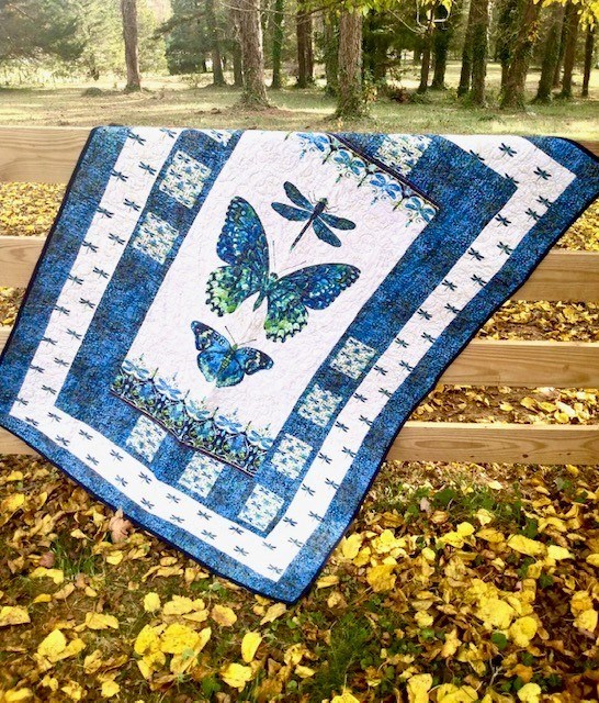 Fly Away home was created with Metallic cotton fabric in greens and blues. This piece is breathtaking... Measures: 66" x 49" An estimated 785 million people do not have clean water—that’s nearly 1 in 10 people worldwide. Many are women and children who walk long distances to gather contaminated water for their families to drink. Access to a sanitary water source improves childhood health, education, and work opportunities for years to come. Thank you for making a difference in the lives of others today simply by bidding on a quilt!
