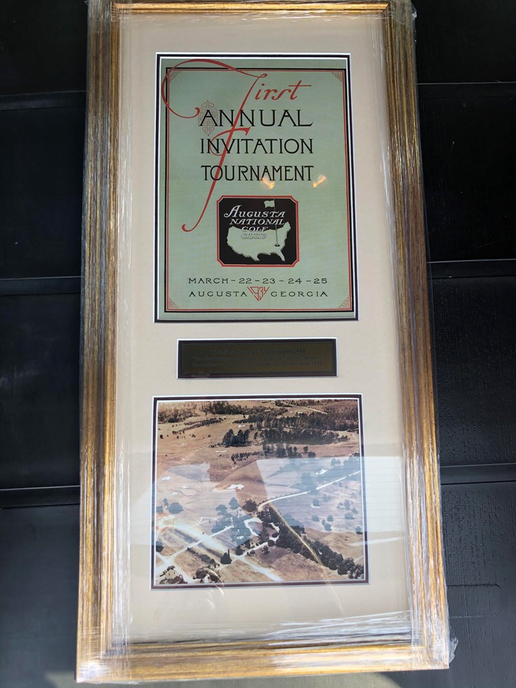 In 1934, the Augusta National Golf Club decided to start an annual tournament with the intent on bringing the best golfers in the world together. This event that was initially named simply the ‘Annual Invitation Tournament’ would eventually be known as ‘The Masters’ This beautifully framed piece shows a print of the cover of the very first tournament program from 1934 and what is believed to be the very first overhead image of Augusta National Golf Club taken just a week before the start of the first tournament. This is truly a conversation starter and one that every fan of The Masters should have in their collection.