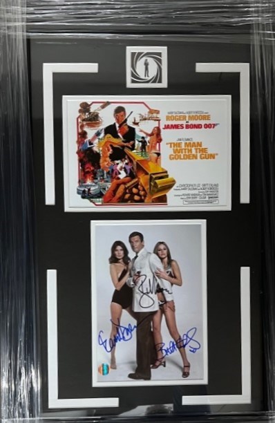 JAMES BOND: THE MAN WITH THE GOLDEN GUN SIGNED BY ROGER MOORE, MAUDE ADAMS & BRITT ECKLAND