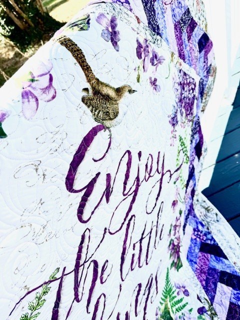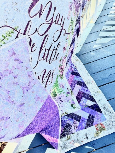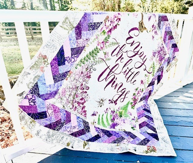 Enjoy the Little Things: This is a must have for nature lovers. Quilted with stunning purple hued batiks and quilted with feather overlays. Measures: 61" x 61" An estimated 785 million people do not have clean water—that’s nearly 1 in 10 people worldwide. Many are women and children who walk long distances to gather contaminated water for their families to drink. Access to a sanitary water source improves childhood health, education, and work opportunities for years to come. Thank you for making a difference in the lives of others today simply by bidding on a quilt!