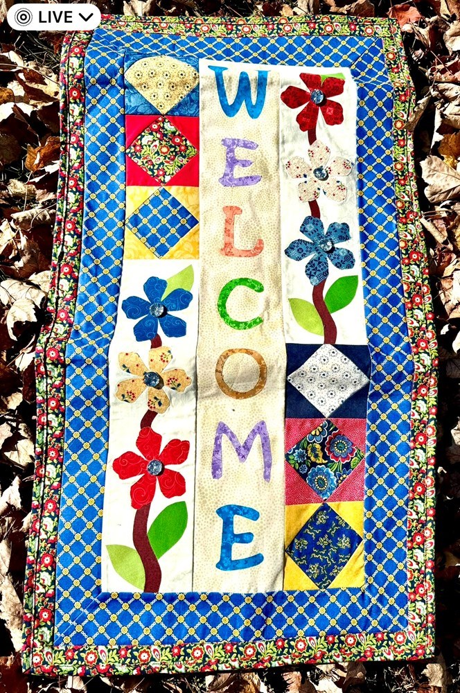 Make a statement this spring with this lovely quilted flag. Two sided with welcome spring and happy Valentines on the other side. Perfect for your front entry way.